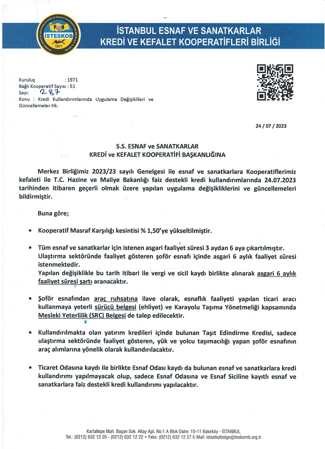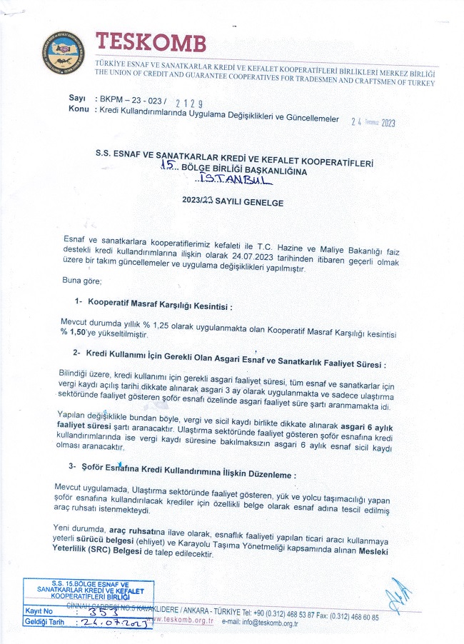 KREDİM KULLANDIRIMLARINDA UYGULAMA DEĞİŞİKLİĞİ VE GÜNCELLEMELER HK Nace koduna göre gruplanan 209 Esnaf ve sanatkar, 100 ile 250 bin TL Kredi kullanımı yapabilcek. Dinle 28 Temmuz 2023 - 13:10 - Güncelleme: 28 Temmuz 2023 - 13:20 Paylaş Tweetle WhatsApp YORUMLAR 0 Yorum adlı kullanıcıya cevap HAZİNE DESTEKLİ KREDİLERDE GEÇMİŞE DÖNÜK AYARLAMA Kooperatifimiz Kefaletiyle Hazine destekli Şahıs Kredi Üst Limitimiz 650.000TL ŞEHİTLERİMİZ VAR ACIMIZ ÇOK BÜYÜK TAKİPSER KURUMUMUZ İŞBİRLİĞİ 15 Temmuz Demokrasi ve Milli Birlik Günü nedir? İSTANBUL MİLLETVEKİLİ DR. SELİM TEMURCİ 'DAN KOOPERATFİMİZE ZİYARET
